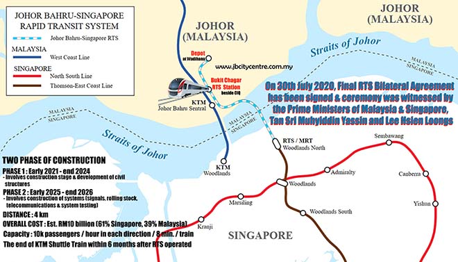 22 Feb 2021 : JB-Singapore RTS link to further spur Johor's economy. Johor can expect a further boost to its economy by the next five years with the completion of the Johor Baru-Singapore Rapid Transit System (RTS) Link which will take commuters only five minutes to reach the island Republic & expected to carry up to 300,000 passengers a day. It will dramatically put Johor as a strategic link to Singapore on another level. Travelling between Johor and Singapore will become much easier and faster. Johor hopes to offer itself as a technological and medical hub plus would be a stronger boost to the hotel, hospitality and tourism sectors in Johor.