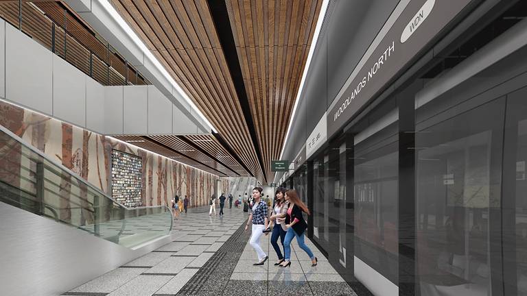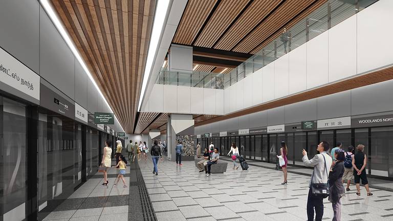 Artist’s impression of the train platforms at the RTS Link Woodlands North Station. (Image: LTA)